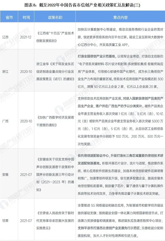 ——31省市城市信创产业政策汇总