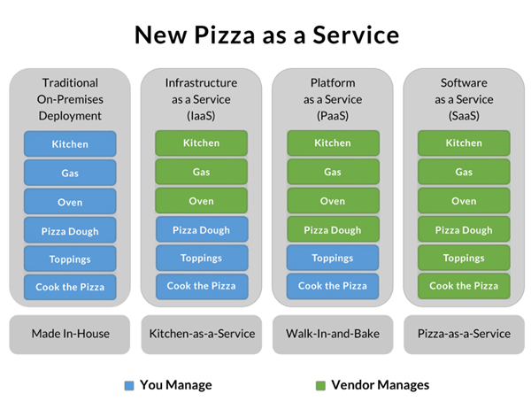IBM 的软件架构师 Albert Barron 曾经使用披萨作为比喻,解释这个问题。David Ng 进一步引申,让它变得更准确易懂。