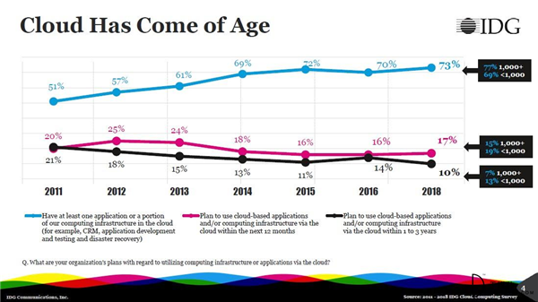 IDG 2018年企业云研究报告,73%的企业“处于云中”