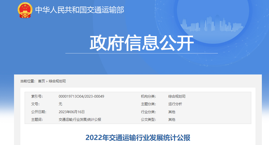 行业热点 | 《2022年交通运输行业发展统计公报》发布!投资3.8万亿元!