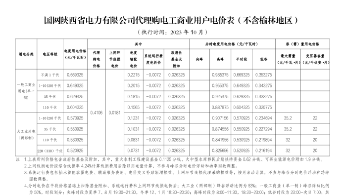 近日,陕西电网有限责任公司公布了陕西省2023年10月电网代理购电价格,为0.4016元/千瓦时,与2月电网代购用户电价0.466元/千瓦时对比,下降了0.0644元/千瓦时,降幅13.82%。