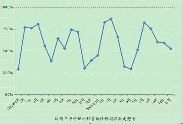 12月1日,据国家发改委价格监测中心网站消息,调查显示12月份钢材市场预期仍审慎乐观。据对全国重要钢材批发市场调查,12月份钢材批发市场销售价格预期指数、购进价格预期指数分别为52.4%、56.7%,比上月分别下降6.7和3.2个百分点,均保持在50%分界线之上,反映出市场对12月份钢材价格继续保持审慎乐观,看涨预期略有减弱。