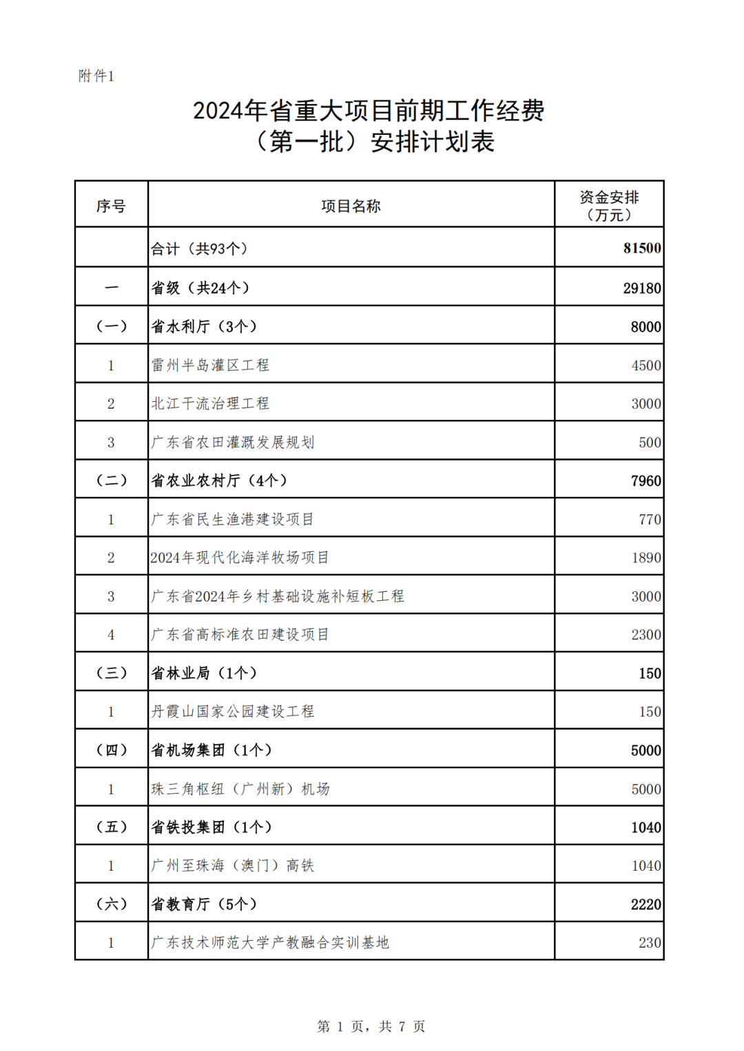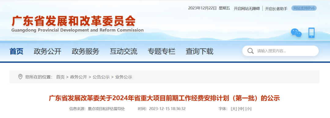 广东省2024年省重大项目前期工作经费安排计划(第一批)公示