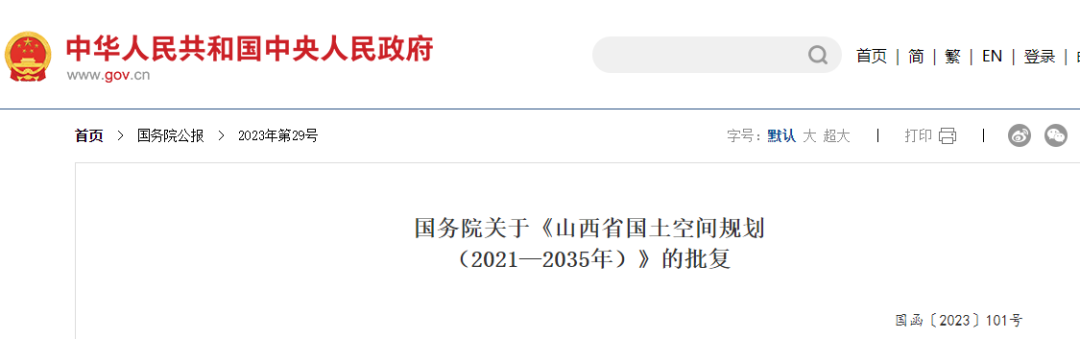 国务院关于《山西省国土空间规划