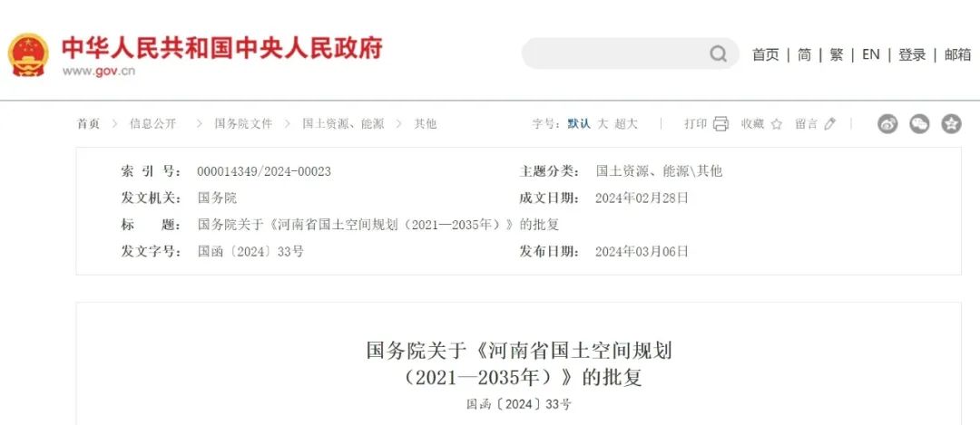 近日,国务院发布关于《河南省国土空间规划(2021—2035年)》的批复。