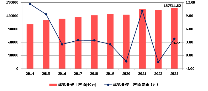 图3 2014-2023年全国建筑业总产值及增速
