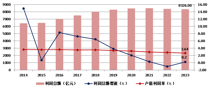 图9 2014-2023年全国建筑业企业利润总额及产值利润率
