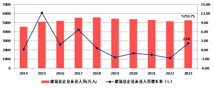 图6 2014-2023年建筑业从业人数增长情况
