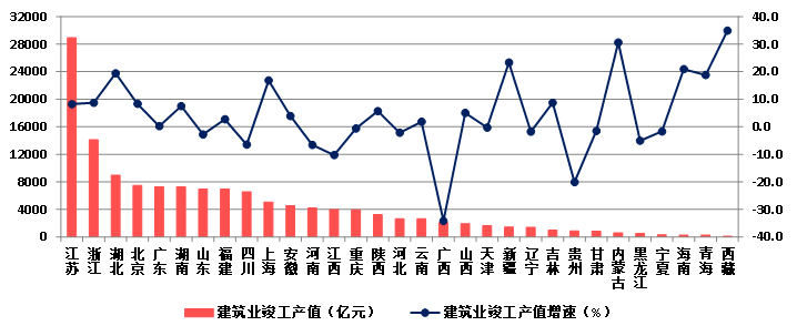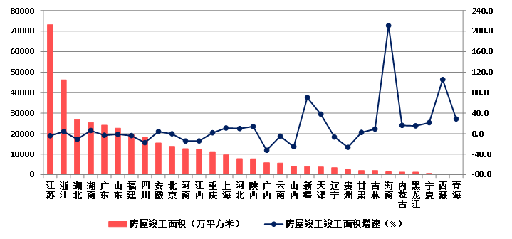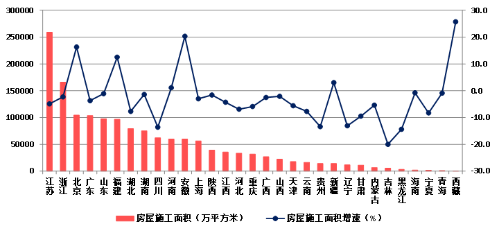 (八)25个地区房屋建筑施工面积下降 琼、藏房屋建筑竣工面积增速显著