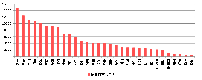 2023年,江苏、山东、广东、浙江、河南五省建筑业企业数量均超过1万家。企业数量超过5000家的还有四川、福建、安徽、湖北、江西、辽宁等6个地区(图21)。