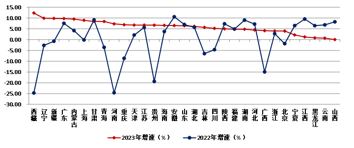 图16 2022-2023年各地区建筑业总产值增速