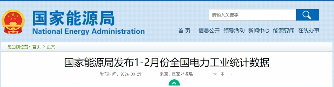 3月25日,国家能源局发布1-2月份全国电力工业统计数据,数据显示: