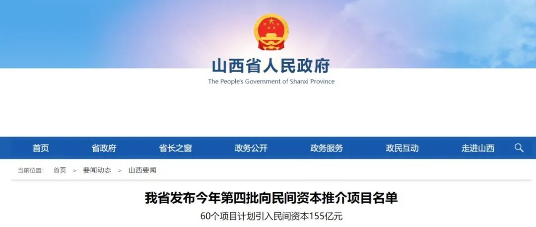 行业政策 | 总投资308亿元!山西公布新一批向民间资本推介项目!