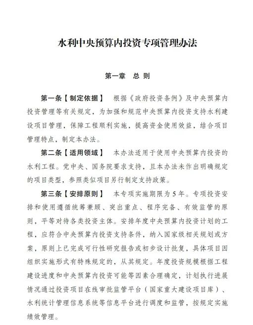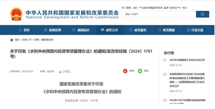 行业政策 | 国家发改委发文!加强水利中央预算内投资专项管理!