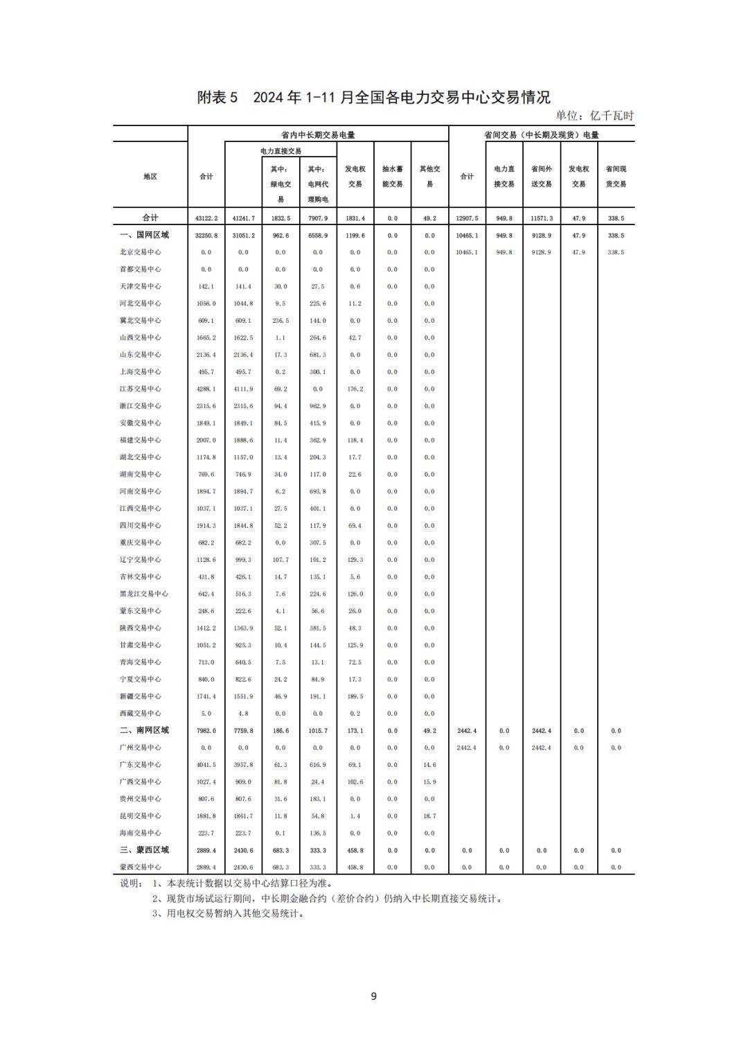 日前,2024年第十一期全国电力市场交易月报发布,披露了2024年1-11月全国电力供需、电力交易情况。