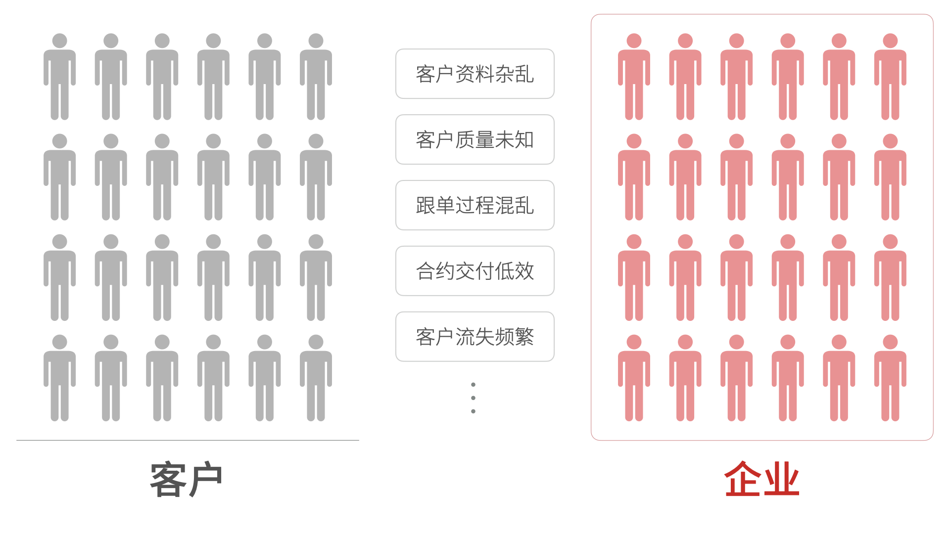 但是对于绝大多数企业而言,他们面对的是数以万记的企业或个人客户,如果没有系统的辅助,往往会导致客户资料杂乱、客户质量未知、跟单过程混乱、合约交付低效、客户流失频繁等企业经营困境,自然无法实现收入预期的最大化。而且企业内部还有分属不同部门的千百名员工,一个客户从线索到回款的全生命流程往往需要各部门数名员工的协同工作,如果没有系统化的流程管理和数字化的决策辅助,也无法提高收入预期的置信度。