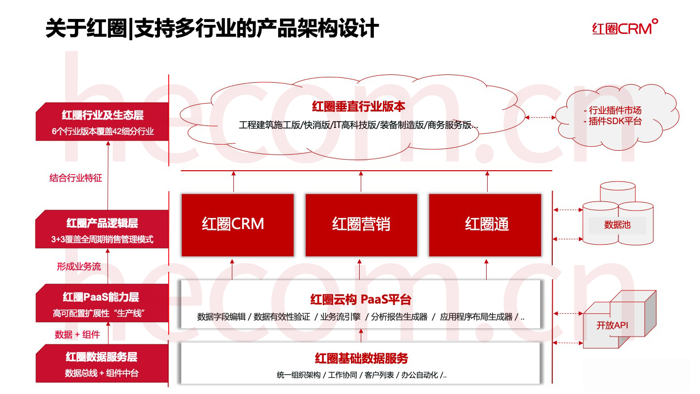 红圈通过自有 PaaS 平台真正实现了垂直化量身定制和深耕行业细分,实现了为企业CIO的营销赋能。