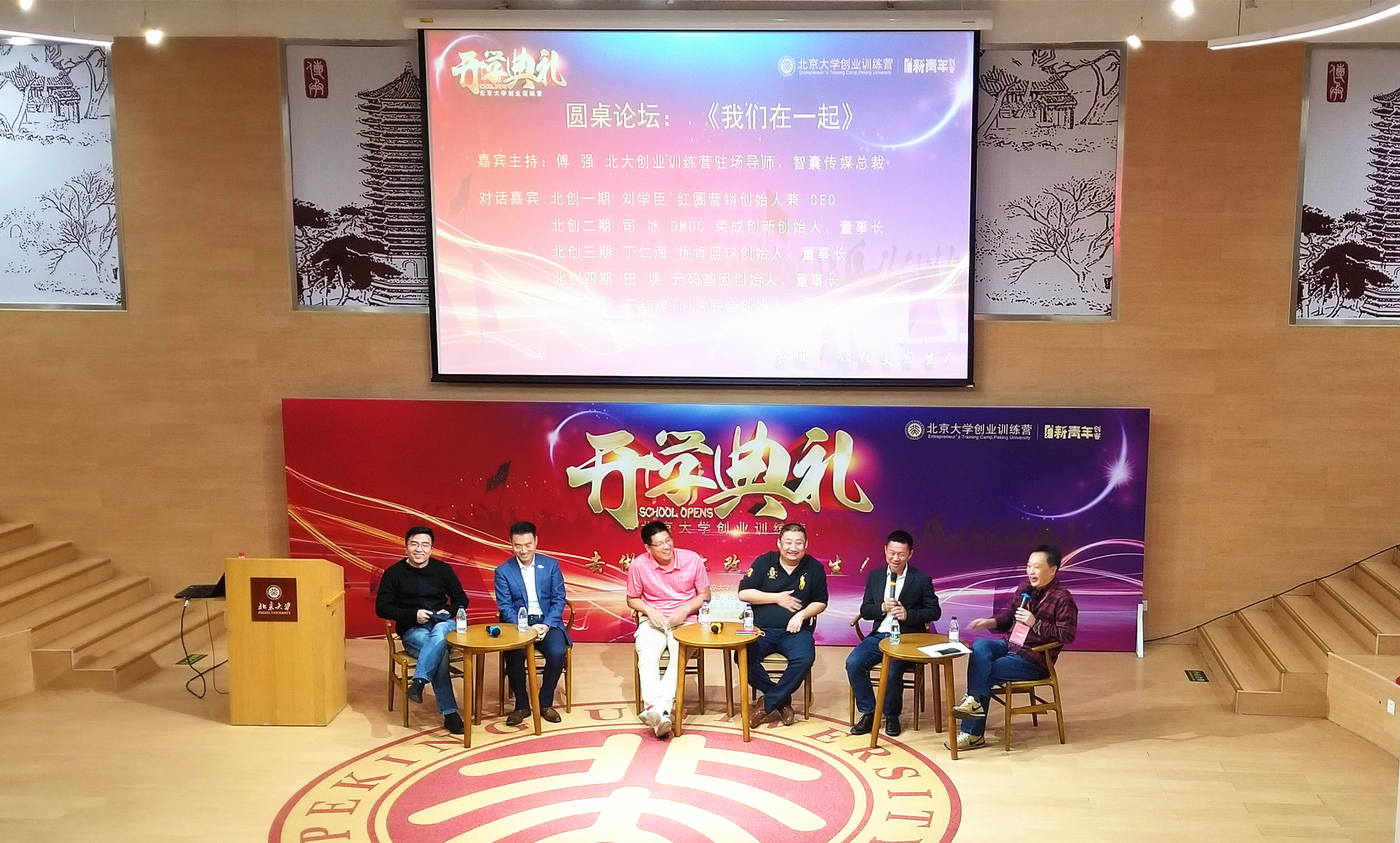 10月21日,北京大学创业训练营(以下简称北创营)全国班(六期)开学典礼在北京大学全球大学生创新创业中心举办,典礼邀请了北大企业家俱乐部创始理事、北创营理事长、中坤投资集团董事长黄怒波,北大企业家俱乐部理事长、松禾资本创始合伙人厉伟,北大企业家俱乐部创始理事兼秘书长、拉卡拉集团创始人兼董事长孙陶然等大咖到场发表演讲,作为北创营一期的“大师兄”,红圈营销创始人兼CEO刘学臣也受邀参加典礼,与北创营其他四期的优秀学员代表进行圆桌对话,分享创业经验,交流创业心得。