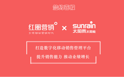 日前,中国企业级SaaS移动CRM领军服务商红圈营销与太阳雨集团达成合作,通过提供行业领先的数字化移动销售管理解决方案,助力太阳雨实现管理效能全新升级,推动业绩稳健增长。
