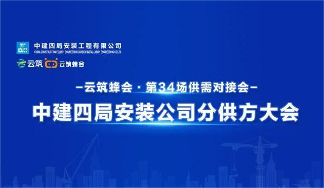 中建四局安装专场供需对接会暨云筑蜂会·第 34 场供需对接会计划于 2 月在广东广州举办,借助本次会议打破供需壁垒,实现四局安装各合伙分公司及专业事业部采购需求与专业分包分供商的快速匹配